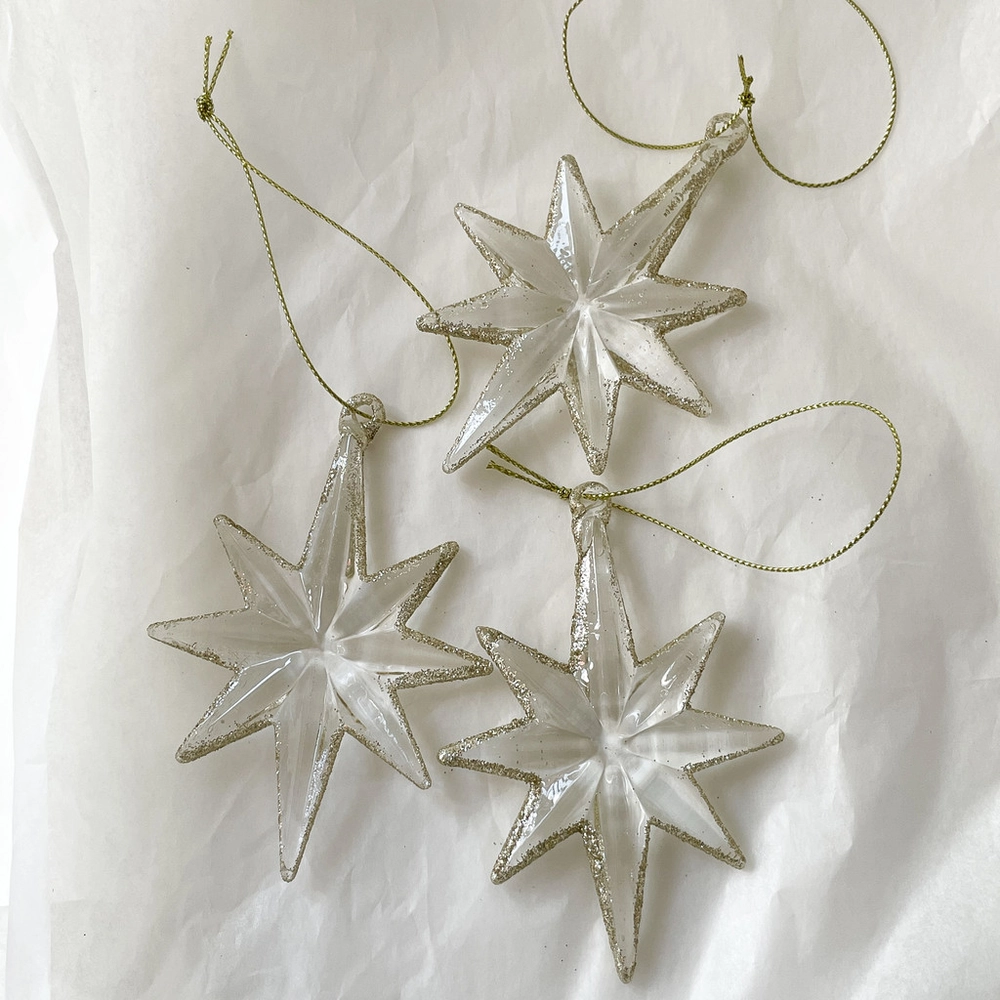 별 테두리에 금빛 펄이 매력적인 오너먼트입니다.