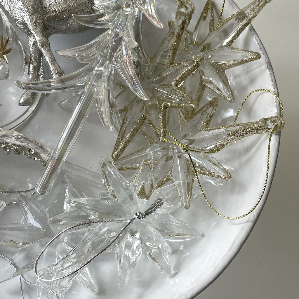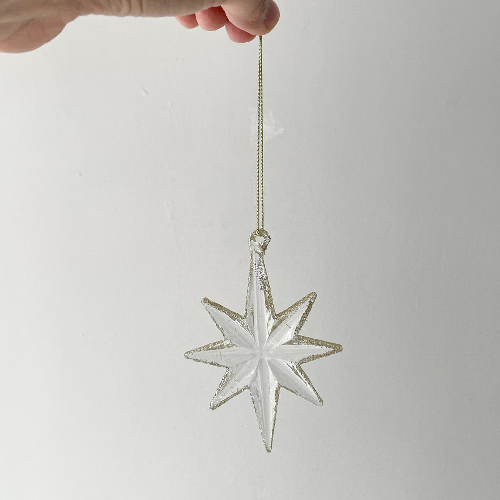 별 테두리에 금빛 펄이 매력적인 오너먼트입니다.