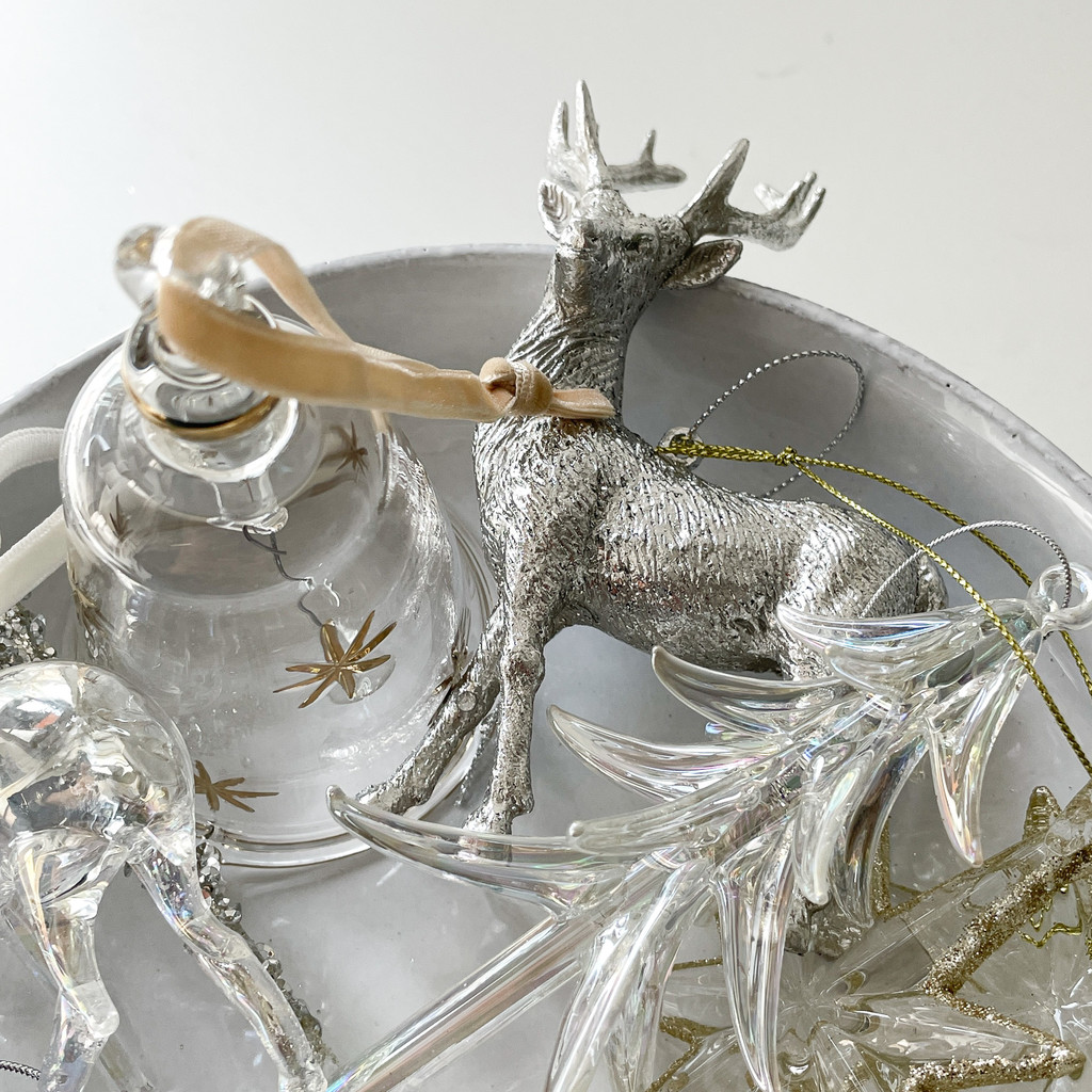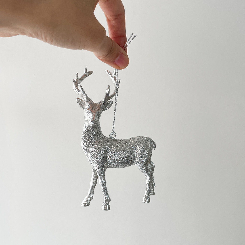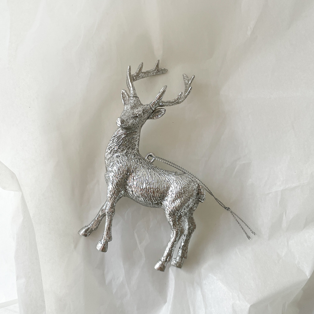 실버 색상의 사슴으로 포인트가 되어줍니다. 인기 오너먼트입니다.
